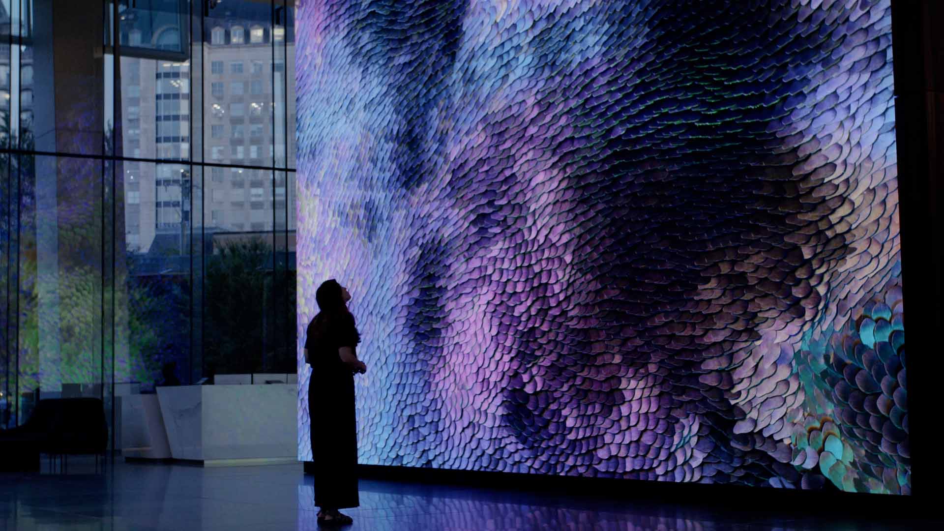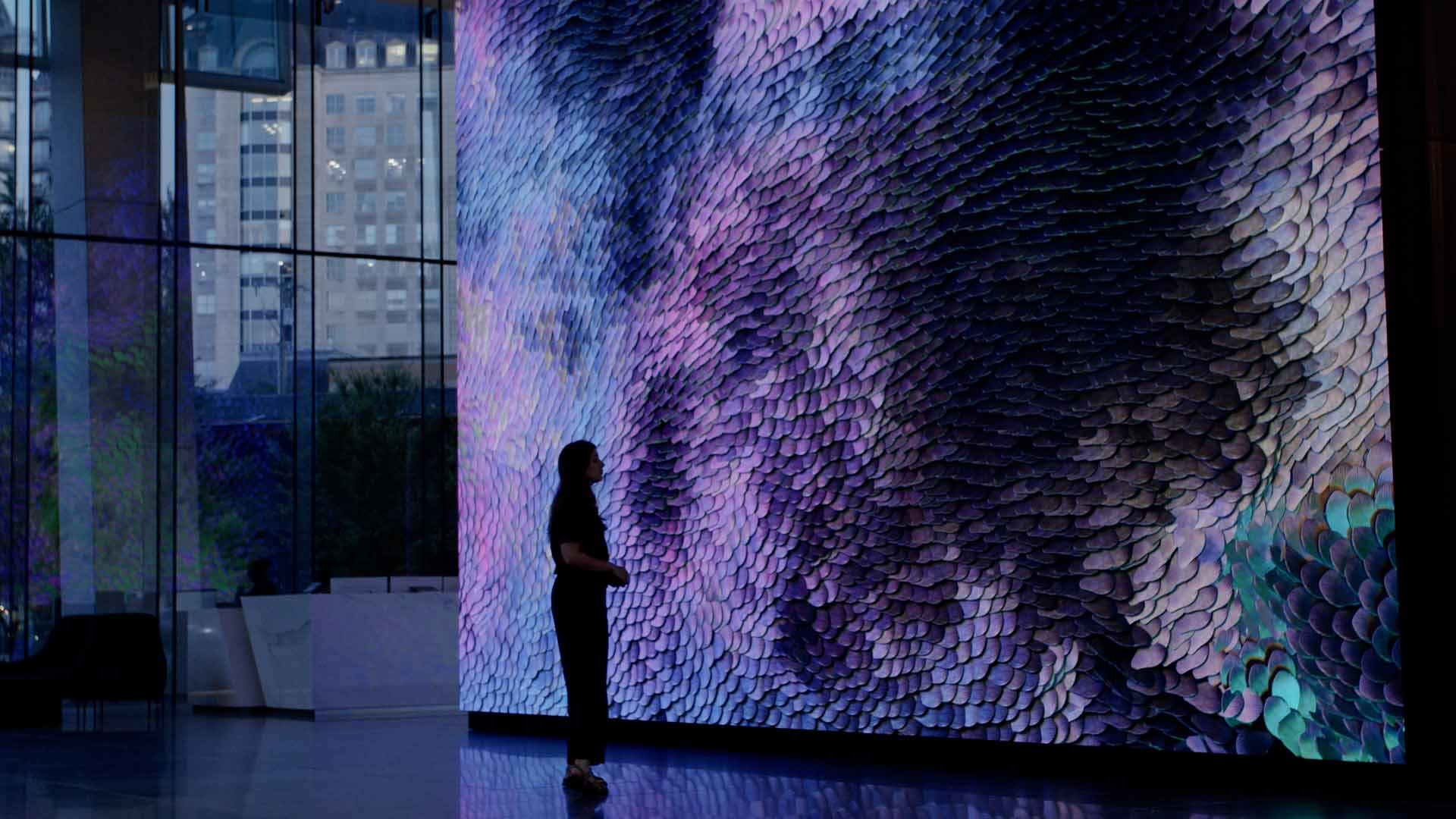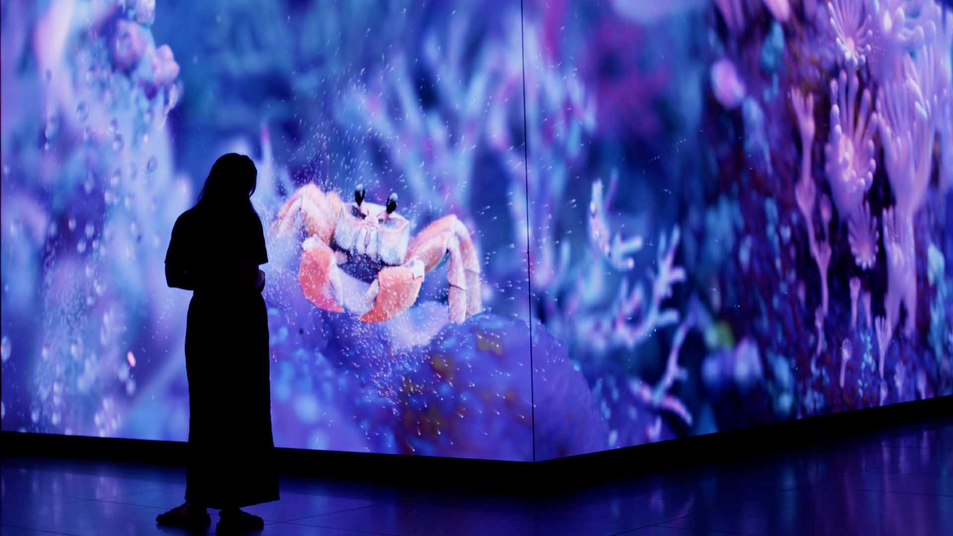 Viewers’ movements send gentle pulses through the habitat, creating new growth, unfurling blossoms, and triggering unexpected bursts of light and motion.
