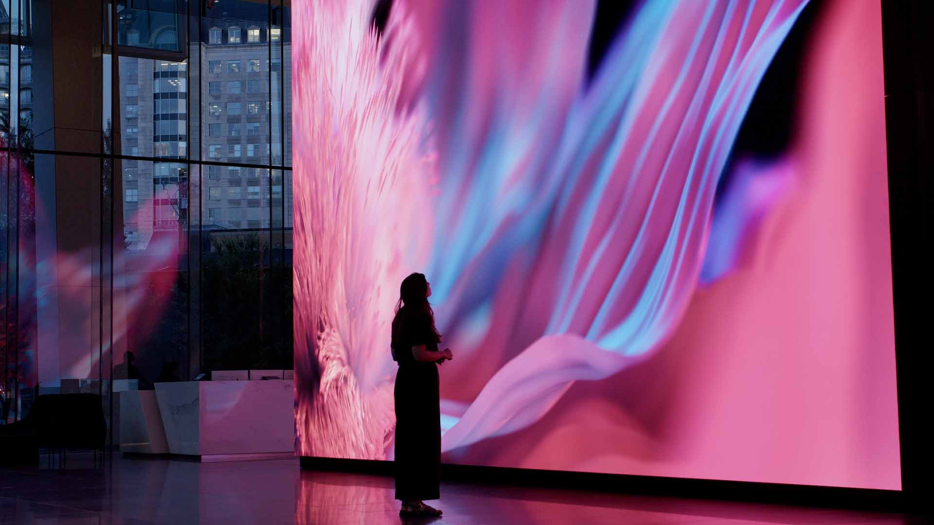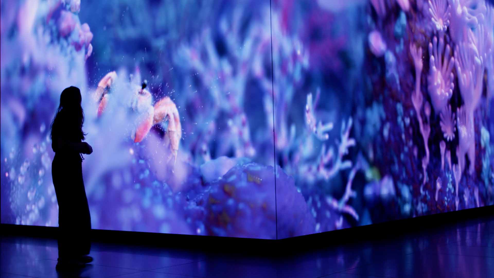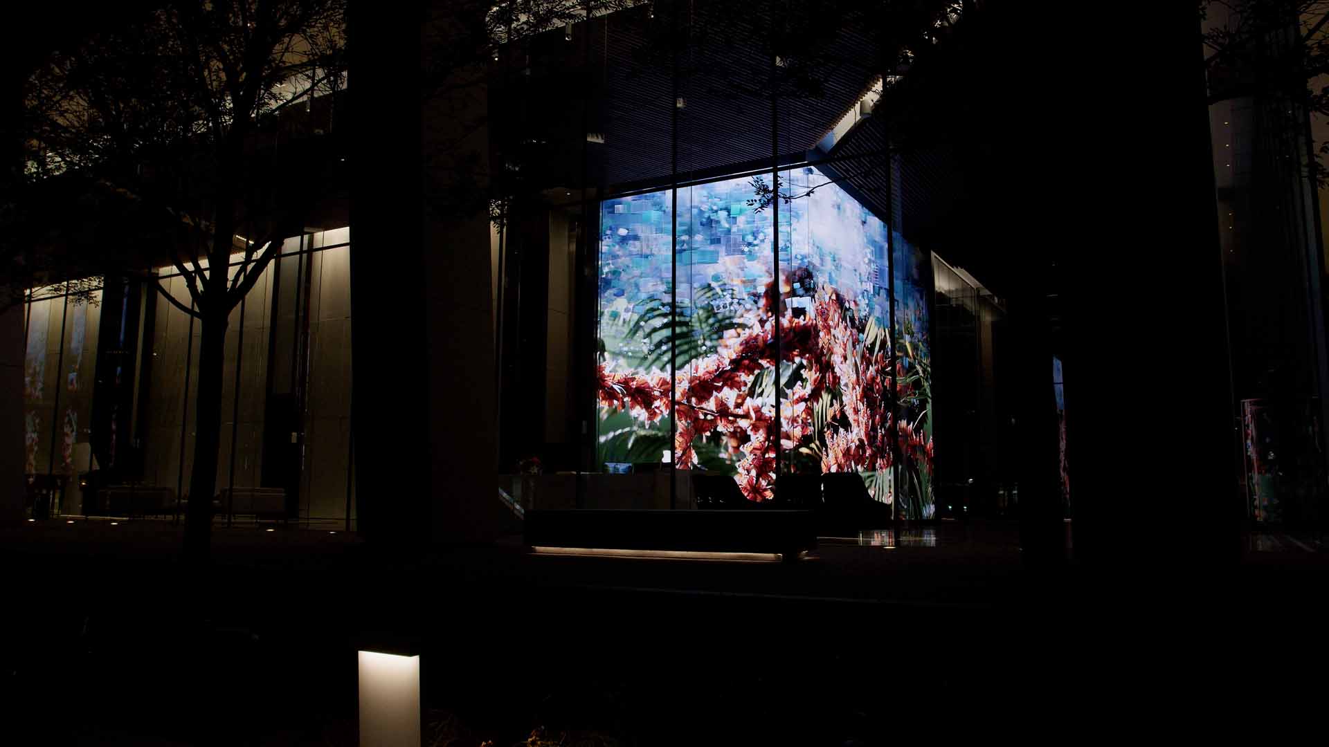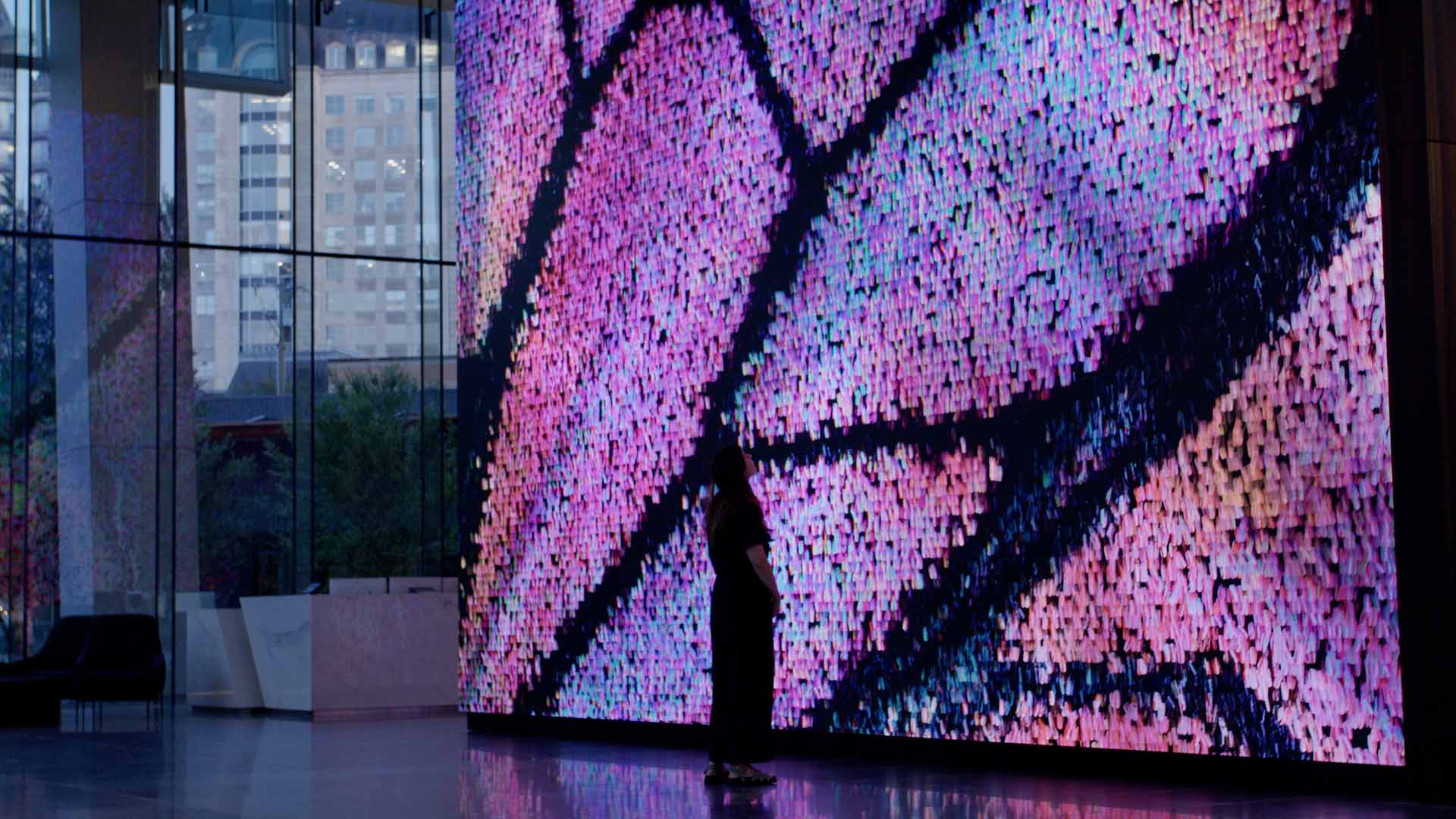 Viewers’ movements send gentle pulses through the habitat, creating new growth, unfurling blossoms, and triggering unexpected bursts of light and motion.
