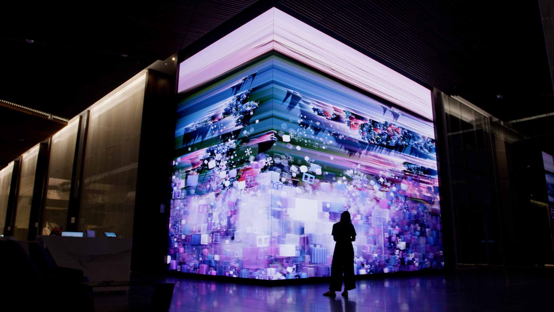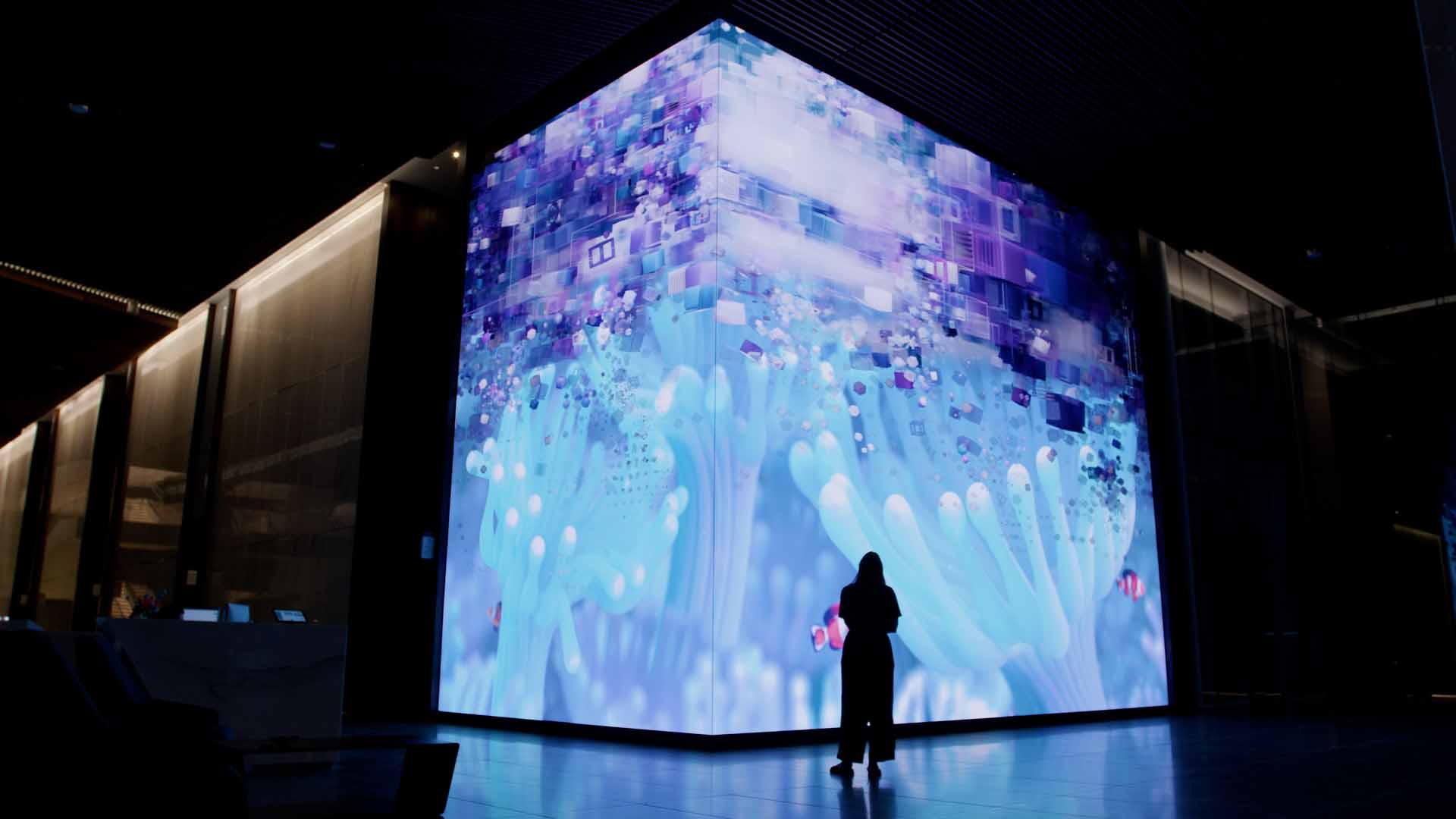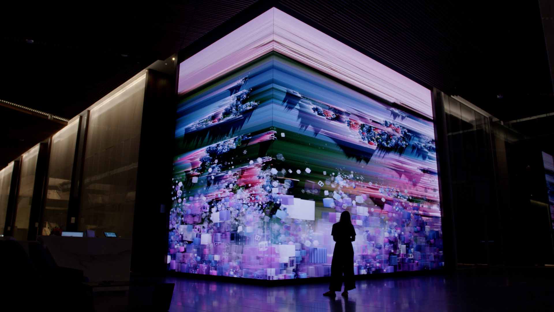 These layers are composited into a single 8K canvas, creating a unified visual environment. A custom-built computer cluster handles the heavy lifting—processing, synchronizing, and playing back the high-resolution content in real time. The result is a scalable, high-performance platform where complex visuals and interactive components work together seamlessly.