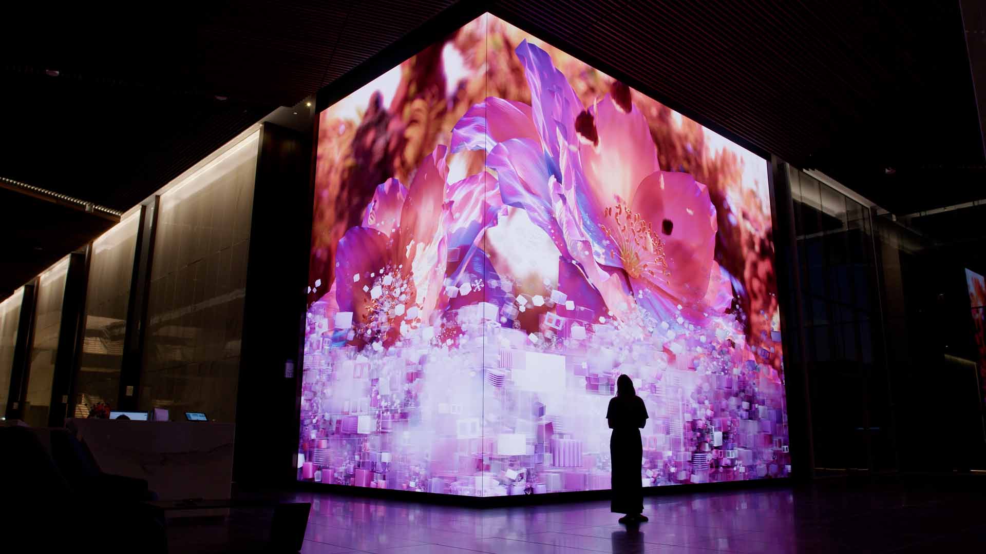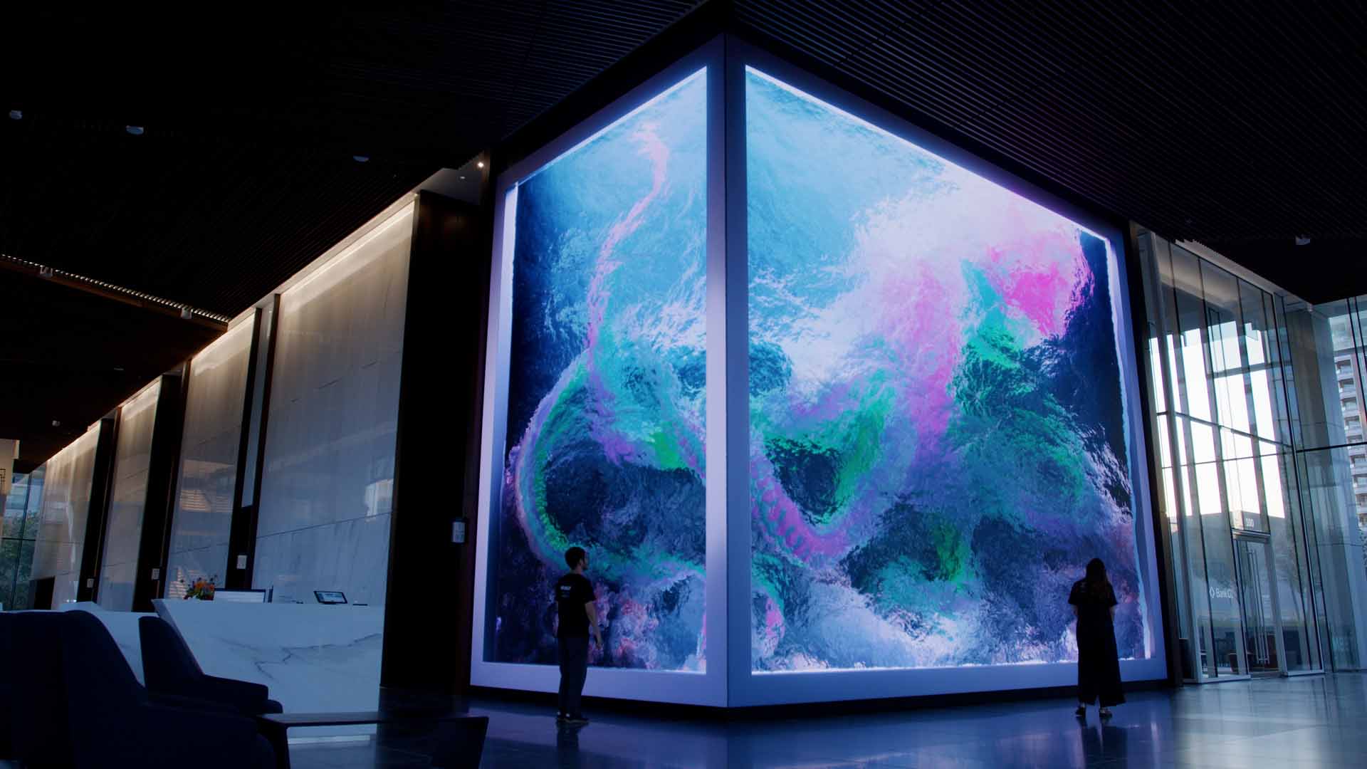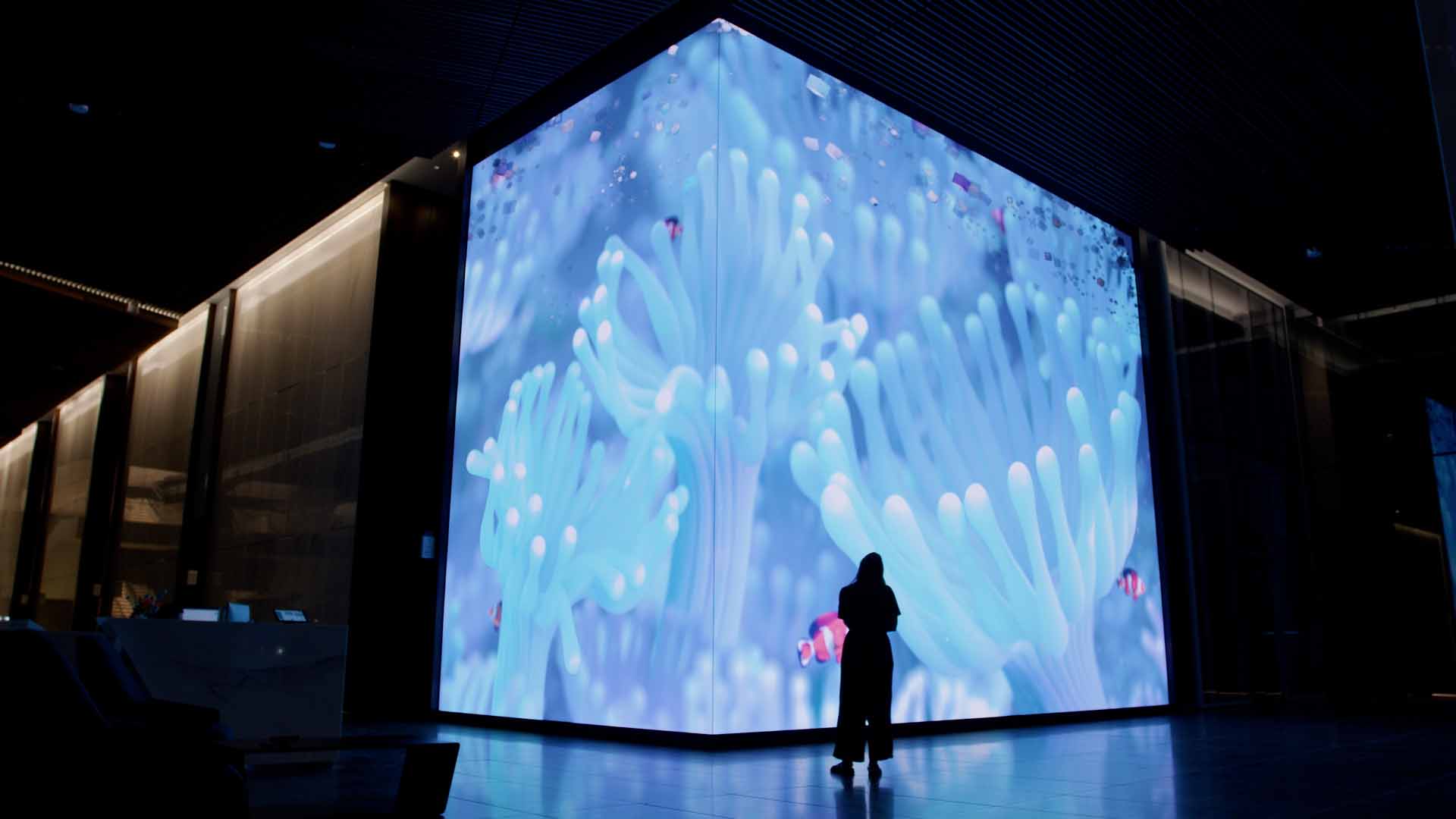 These layers are composited into a single 8K canvas, creating a unified visual environment. A custom-built computer cluster handles the heavy lifting—processing, synchronizing, and playing back the high-resolution content in real time. The result is a scalable, high-performance platform where complex visuals and interactive components work together seamlessly.